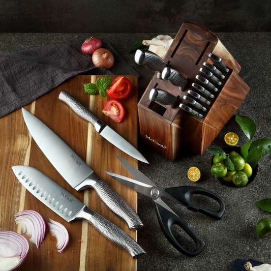 McCook® Knife Sets,MC69 German Stainless Steel Kitchen Knives Block Set with Built-in Sharpener