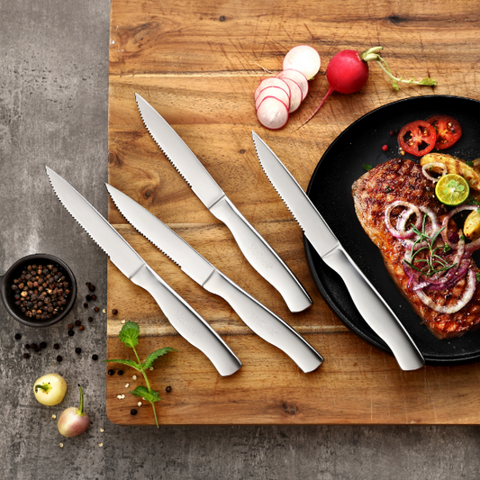 McCook® Premium Knife Sets,MC20 Full Tang Hammered German Stainless Steel Kitchen Knife Set with 8 Pieces Steak Knives and Acacia Block