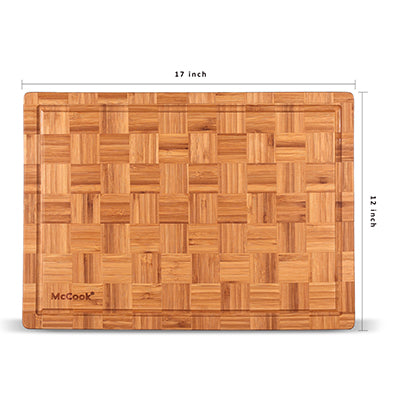 Cutting Board, McCook® MCW12-S Bamboo Cutting Board, Wood Cutting Board for Meat, Cheese and Vegetables w Juice Groove, End Grain Cutting Board, Cheese Charcuterie Board Serving Tray (S, 14”*10”*0.8”)